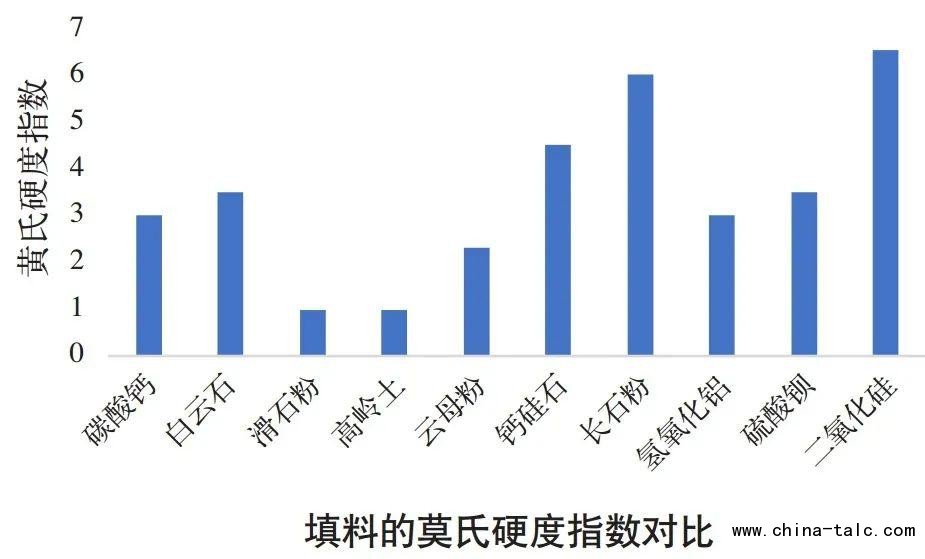 硬度是矿物填料的一项重要的物理指标,直接影响着最终涂膜的机械性能。在众多矿物填料中,硬度最高的填料为 二氧化硅,尤其是石英状的结晶形二氧化硅,可以达到7左右。